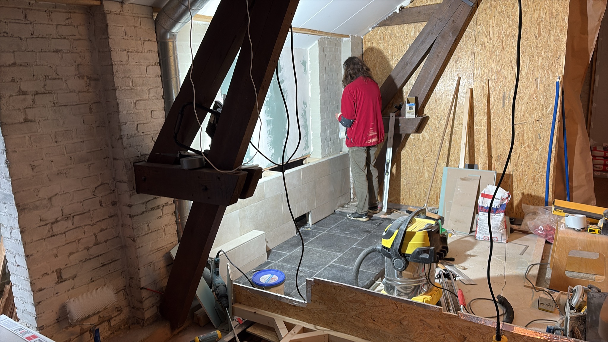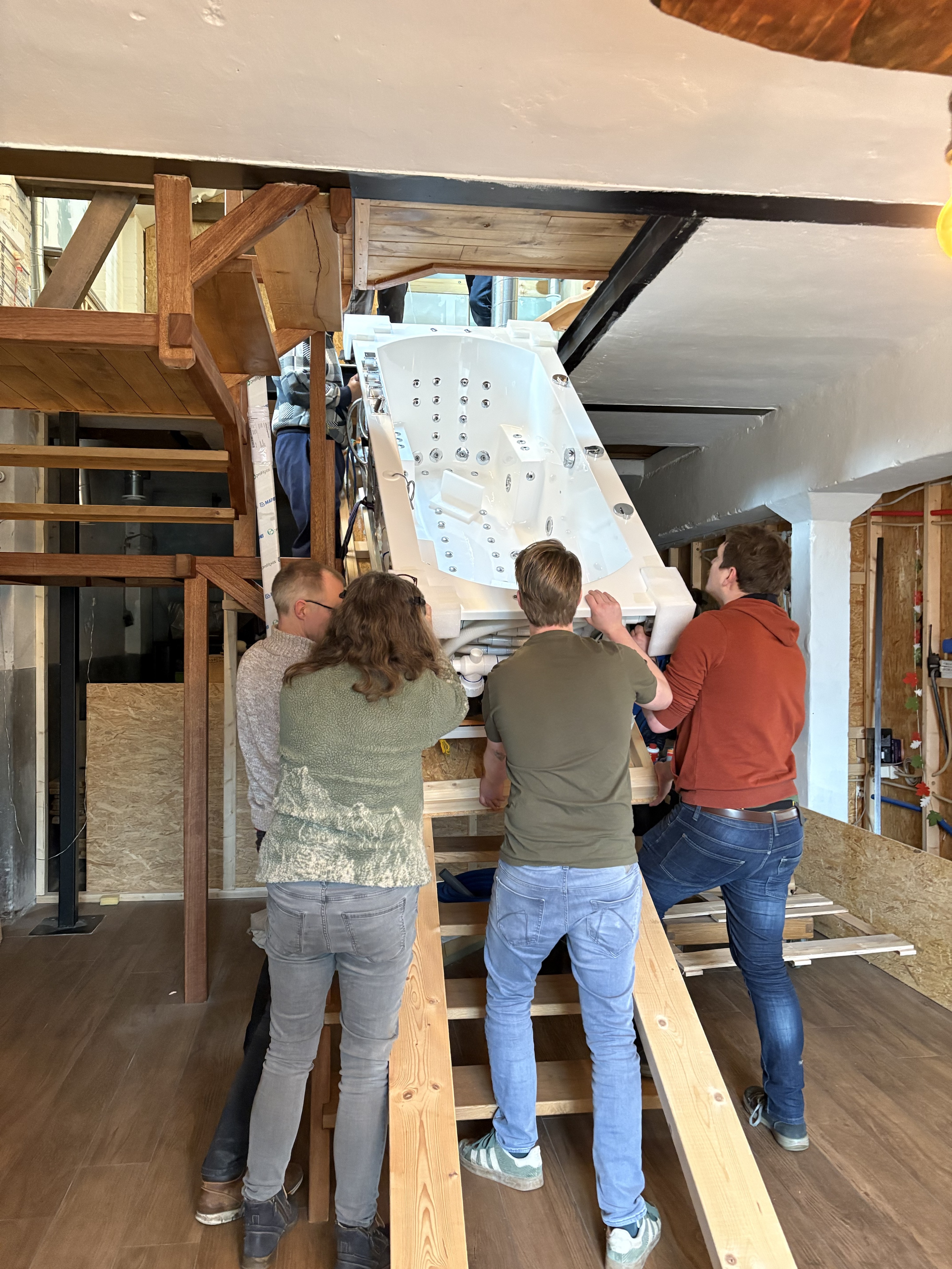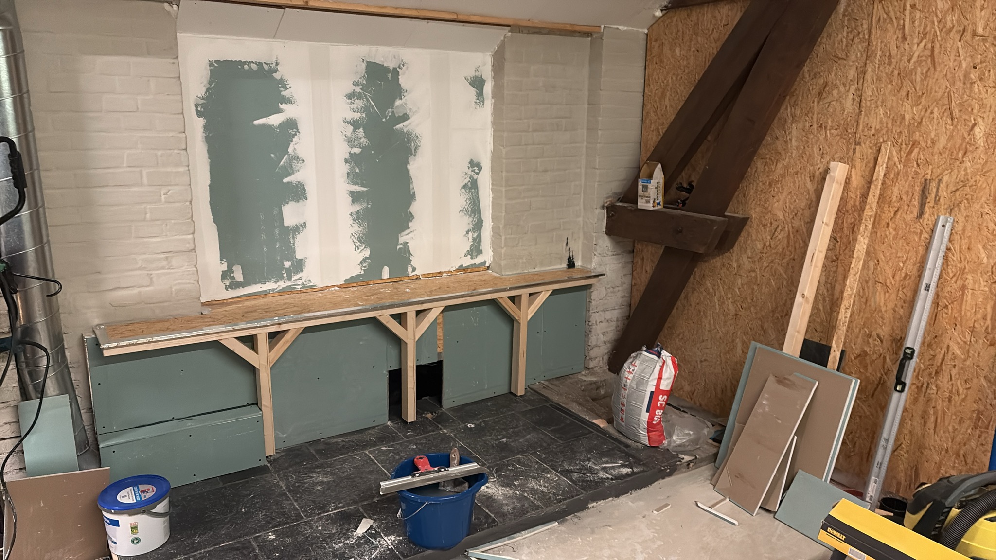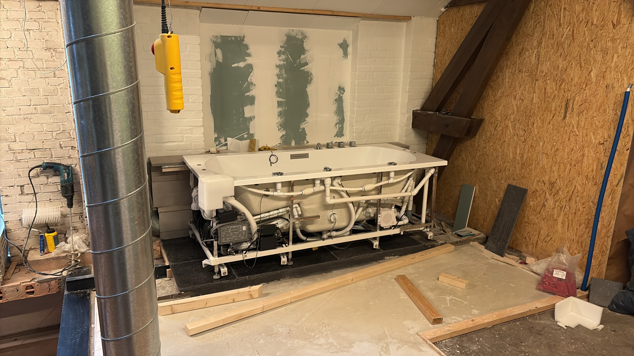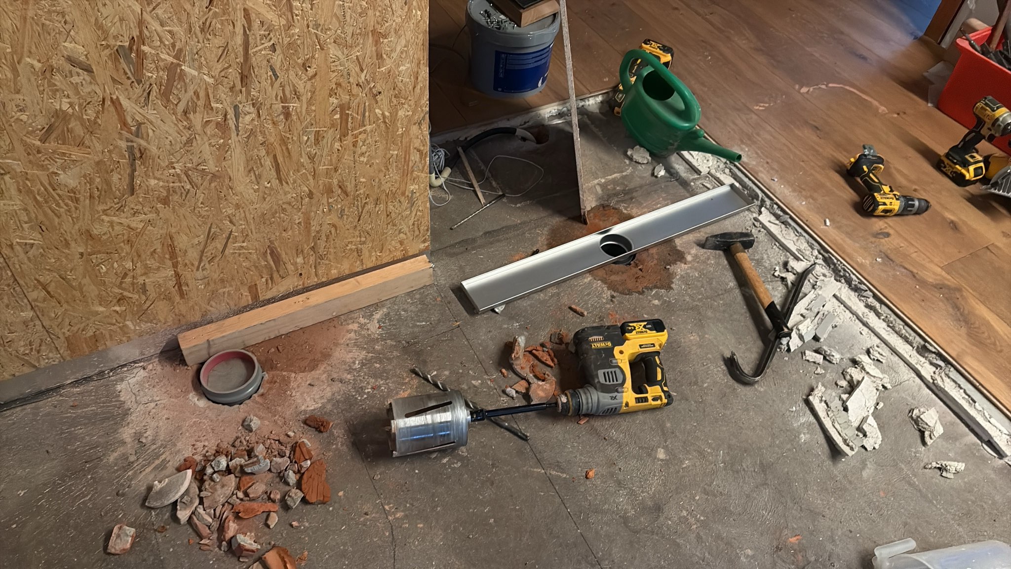 er komt een wasbak in de schuur, en daarmee is ie ver af