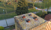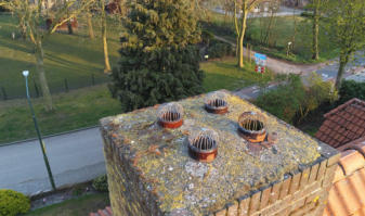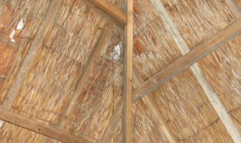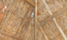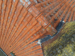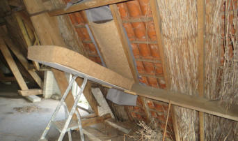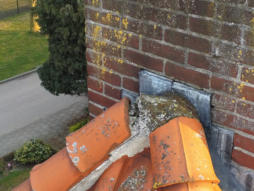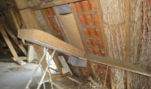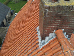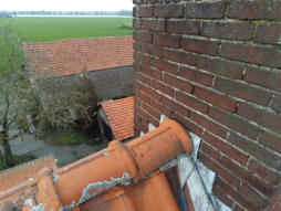 Dak en schoorstenen Het woonhuis heeft houten dakbeschot, rond de schoorstenen zijn er soms wat kleine lekkages.